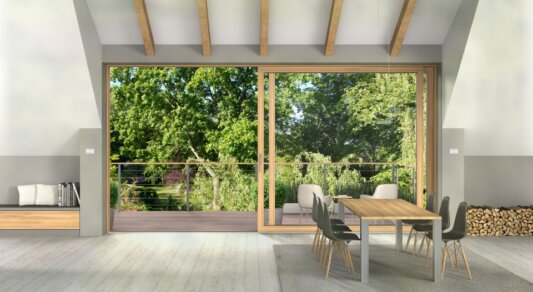 Ideali per verande, terrazzi o porticati, le vetrate a pacchetto offrono una visione panoramica senza ostacoli e una massima integrazione tra interno ed esterno. Grazie alla loro struttura senza profili verticali, le vetrate a pacchetto garantiscono un impatto visivo minimale, mantenendo al contempo una solida protezione dagli agenti atmosferici.